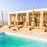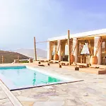 A 6 hálószobás Villa Poppy Mykonos Áno Merá hegyre néző teraszt, valamint úszómedencét biztosít.