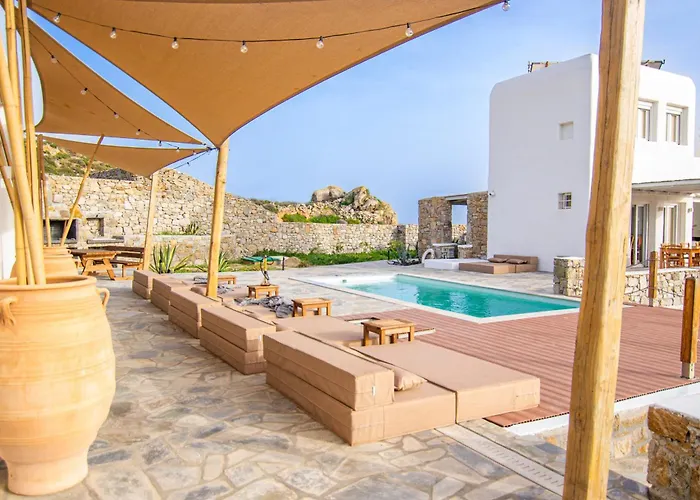 Situata a una distanza di 4 km dal Museo Archeologico di Mykonos, la Villa Poppy Mykonos Ano Mera comprende una piscina, nonché una jacuzzi per rilassarsi. Dotata di una terrazza, questa villa con 6 camere da letto si trova a 10 minuti in macchina dalla Piazza Fabrica.